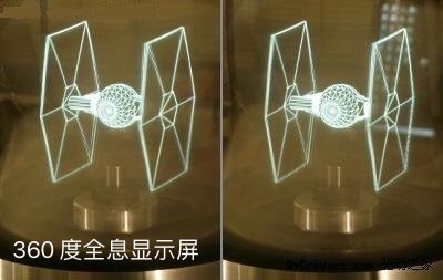 360 度全息顯示屏:由南加利福尼亞大學(xué) 2007 年研制,將圖像投影在高速旋轉(zhuǎn)的鏡面上,并由計算機進行視頻信號渲染。