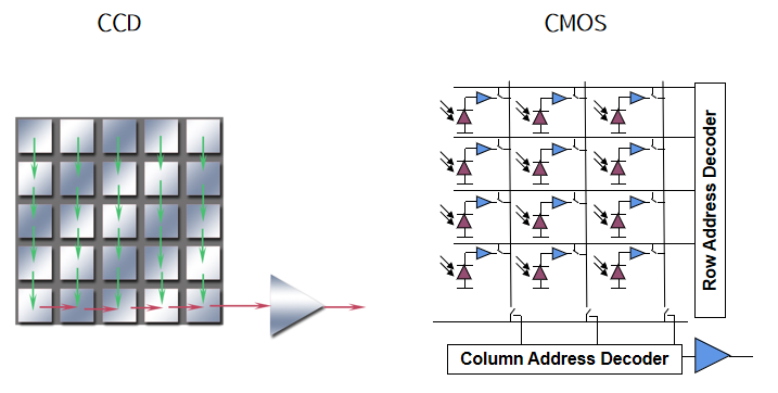 由于光電轉(zhuǎn)換設(shè)備和放大設(shè)備都是針對(duì)微觀的電荷進(jìn)行操作。就需要一個(gè)精密的器件來完成這兩個(gè)過程,我們常用的是CCD和COMS。