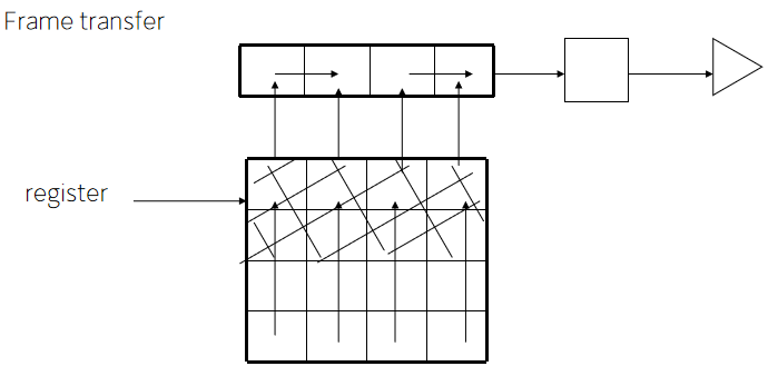 陣列的每一個(gè)像素都感光,傳輸時(shí),每一列向單行串行寄存器上相對(duì)應(yīng)的位置轉(zhuǎn)移。同時(shí),串行寄存器向陣列的出口轉(zhuǎn)移陣列的一半像素感光,另一半被遮住,傳輸時(shí),首先感光部分快速向不感光部分的對(duì)應(yīng)位置轉(zhuǎn)移。之后每一列向單行串行寄存器上相對(duì)應(yīng)的位置轉(zhuǎn)移。同時(shí),感光部分的空間由于沒有了電荷可以繼續(xù)感光。