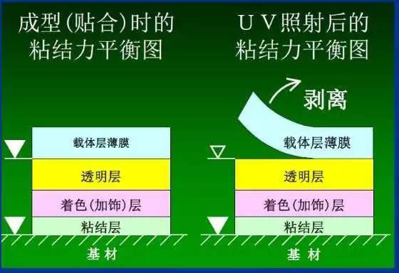 表面是一層硬化的透明薄膜,中間是印刷圖案層,背面是塑膠層,油墨夾在中間