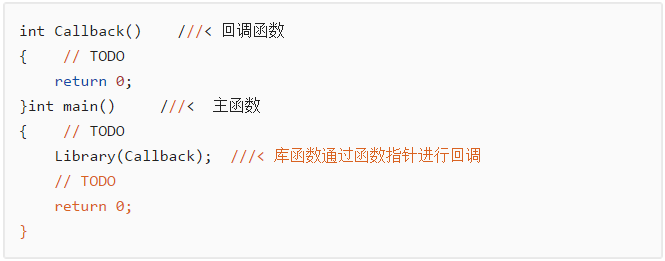 因?yàn)榭梢园颜{(diào)用者與被調(diào)用者分開,所以調(diào)用者不關(guān)心誰是被調(diào)用者。它只需知道存在一個具有特定原型和限制條件的被調(diào)用函數(shù)。
