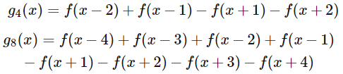 論文Real-time numerical peak detector中定義了4階和8階線性濾波器