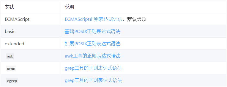 文法的正則表達(dá)式,你可以直接使用它們。對(duì)于其他人來說,我們直接使用默認(rèn)的ECMAScript文法即可(