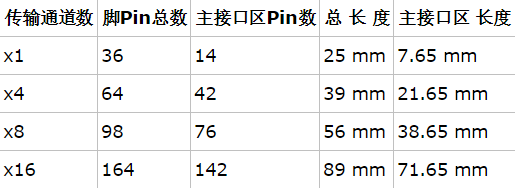 3.3 PCI-E不同傳輸通道數(shù)設備的金手指數(shù)和長度