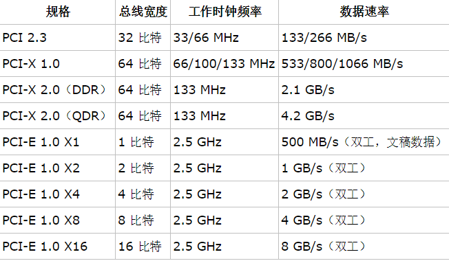 PCI-X目前的最新版本是2.0。下面講的的1.0版本,在外觀上,它與64位PCI接口差不多。目前主要有100MHz和133MHz兩種外頻模式,不過目前主要用的是133MHz PCI-X接口,理論共享傳輸速率達到了1.06GB/s。后來推出的2.0版本,頻率位266MHz和533MHz,共享傳輸速率為2.1GB/s和4.2GB/s。后來出的3.0標準1066MHz在PCI-E的沖擊下沒有了下文。
