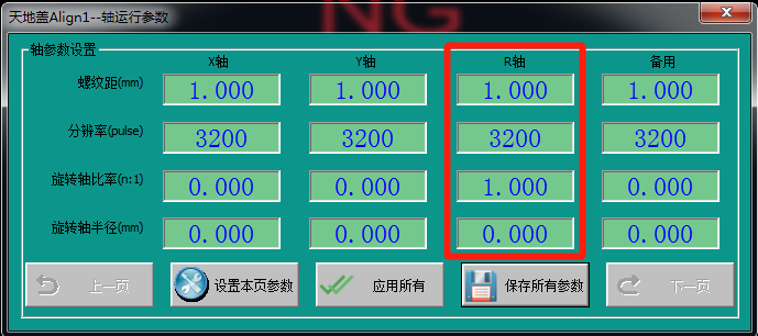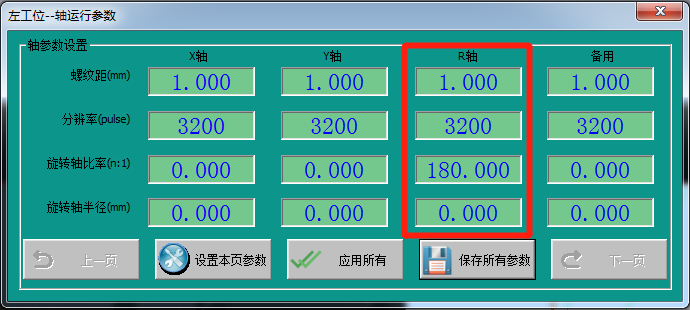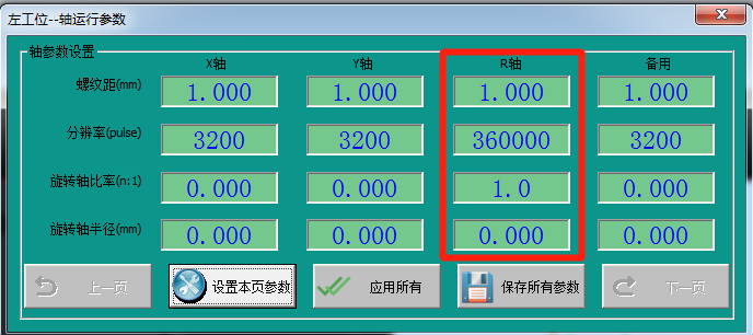 注明:“旋轉(zhuǎn)軸比率(n:1)”和“旋轉(zhuǎn)半徑(mm)”一個(gè)填寫數(shù)值后,另一個(gè)必須填寫為0