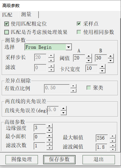 卡尺工具的寬度,例如卡尺寬度是10代表會(huì)在是個(gè)像素點(diǎn)的寬度范圍內(nèi)取到一個(gè)有效點(diǎn)。默認(rèn)值為10