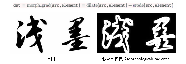 形態(tài)學(xué)梯度(Morphological Gradient)為膨脹圖與腐蝕圖之差,數(shù)學(xué)表達(dá)式如下: