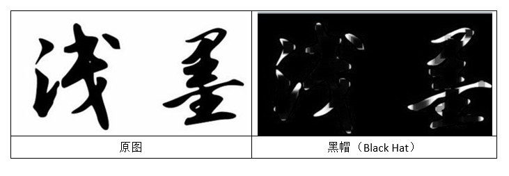 黑帽運(yùn)算后的效果圖突出了比原圖輪廓周圍的區(qū)域更暗的區(qū)域,且這一操作和選擇的核的大小相關(guān)。
