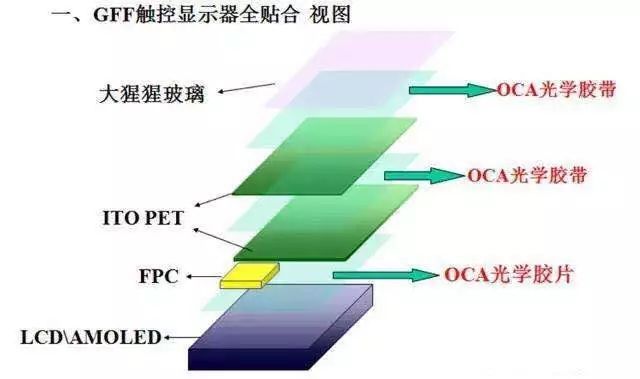 四、OCA光學(xué)膠在部分光電顯示組件中的應(yīng)用圖示如下: