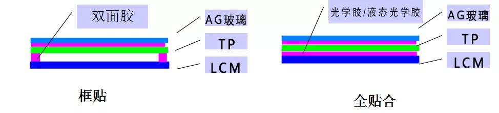 又稱為口字膠貼合,即簡(jiǎn)單的以雙面膠將觸摸屏與顯示屏的四邊粘起來,兩塊屏中間是空的,有空氣。