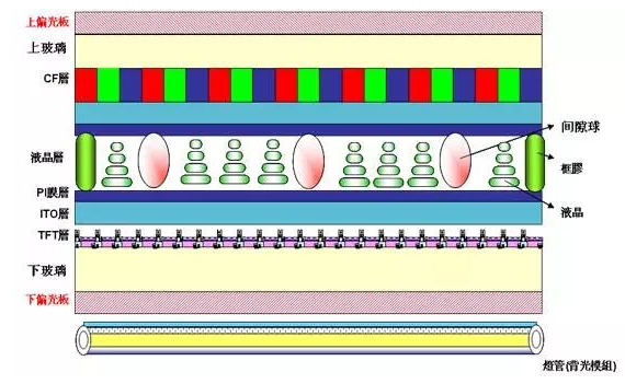 1.偏光板:最主要作為光柵,僅讓單一方向的光可通過,還可以保護CF層與TFT層