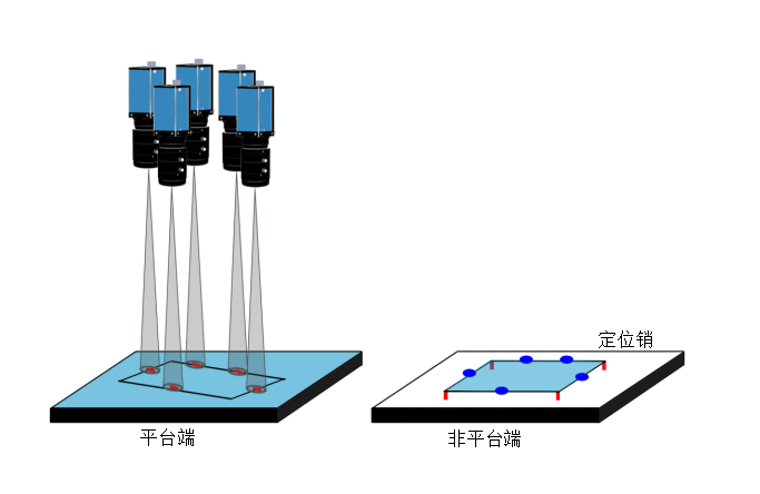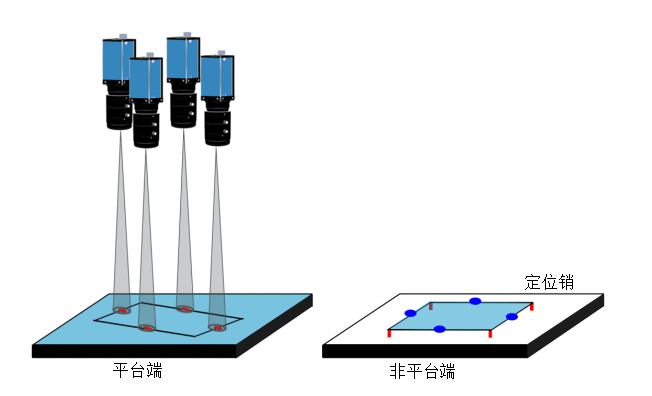 應(yīng)用場(chǎng)景:彌補(bǔ)單目四Mark應(yīng)用在較大尺寸產(chǎn)品時(shí)精度不夠的問(wèn)題,相對(duì)單目四Mark精度更高