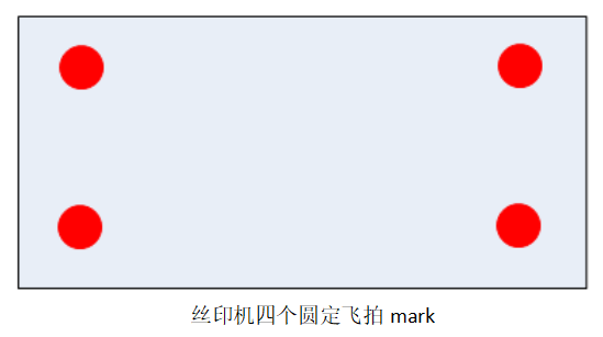 糾偏方法:如上圖所示,類(lèi)似單目四Mark,區(qū)別在于單目四Mark是以矩形角點(diǎn)作為Mark點(diǎn),絲印機(jī)四個(gè)圓定飛拍是以圓心作為Mark點(diǎn)。