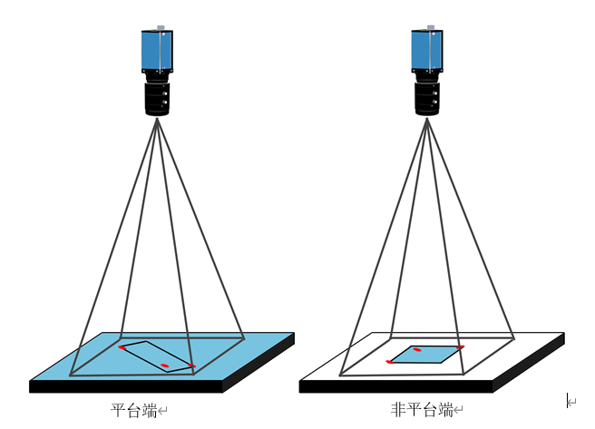 說(shuō)明:非平臺(tái)端上的產(chǎn)品通過(guò)定位銷(xiāo)或其他方式確保來(lái)料都是在相對(duì)固定的位置,平臺(tái)端的產(chǎn)品來(lái)料位置不固定,找出四個(gè)交點(diǎn)后,根據(jù)糾偏算法找到偏移量,根據(jù)偏移量將平臺(tái)端的產(chǎn)品貼到非平臺(tái)端上。