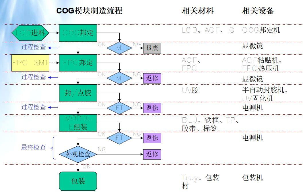 COG/FOG:LCD、IC、ACF、FPC、涂覆膠、緩沖材